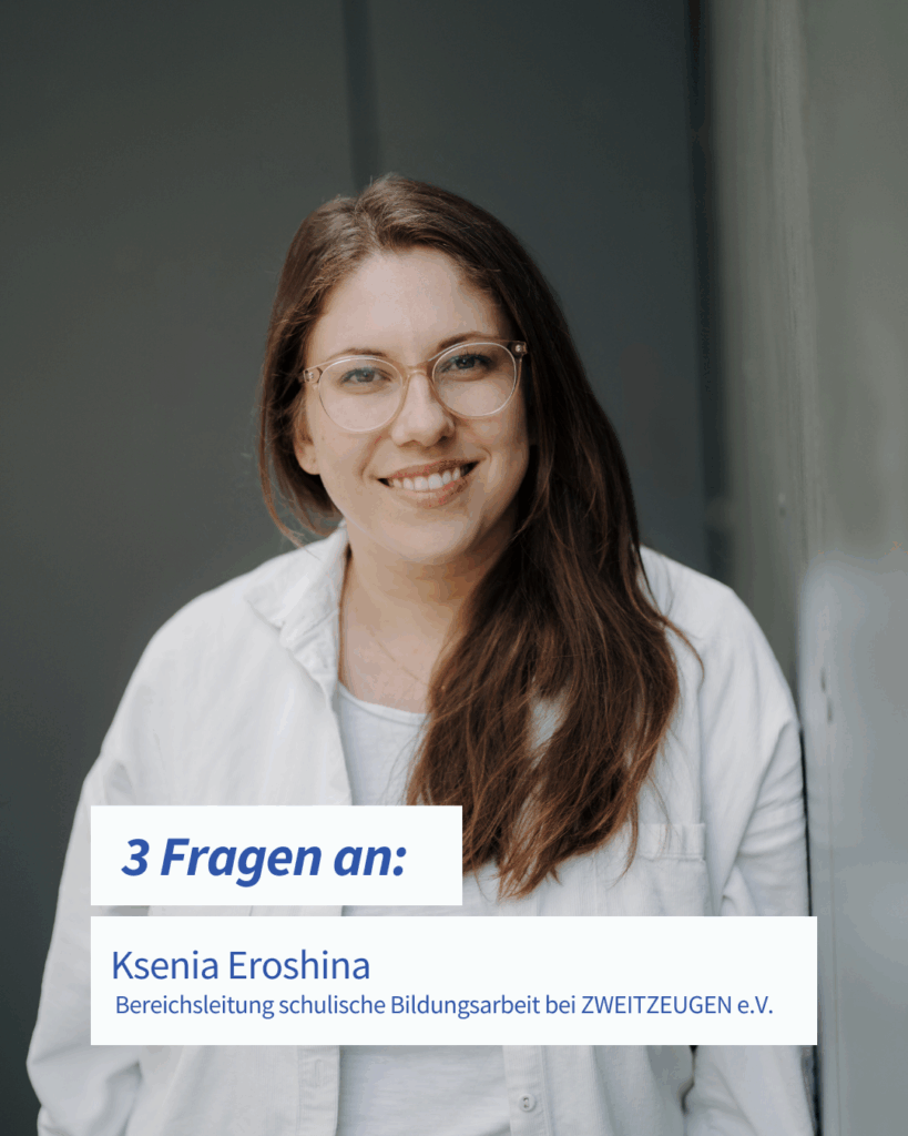 Wir waren im Gespräch mit Ksenia Eroshina, Bereichsleitung für die schulische Bildungsarbeit bei ZWEITZEUGEN e.V.
