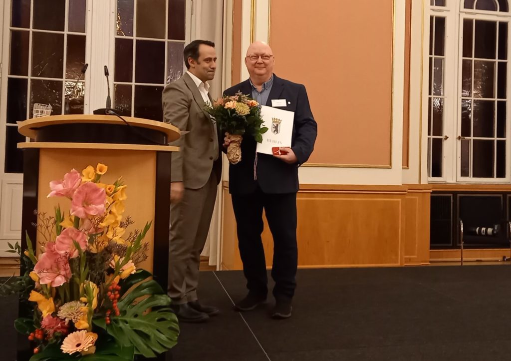 Wir gratulieren Jochen Fest, ehrenamtlicher lsfb-Vorstandsvorsitzender, der am 18. November im Roten Rathaus die „Berliner Ehrennadel für besonderes soziales Engagement“ durch den Staatssekretär für Soziales Aziz Bozkurt verliehen bekam.